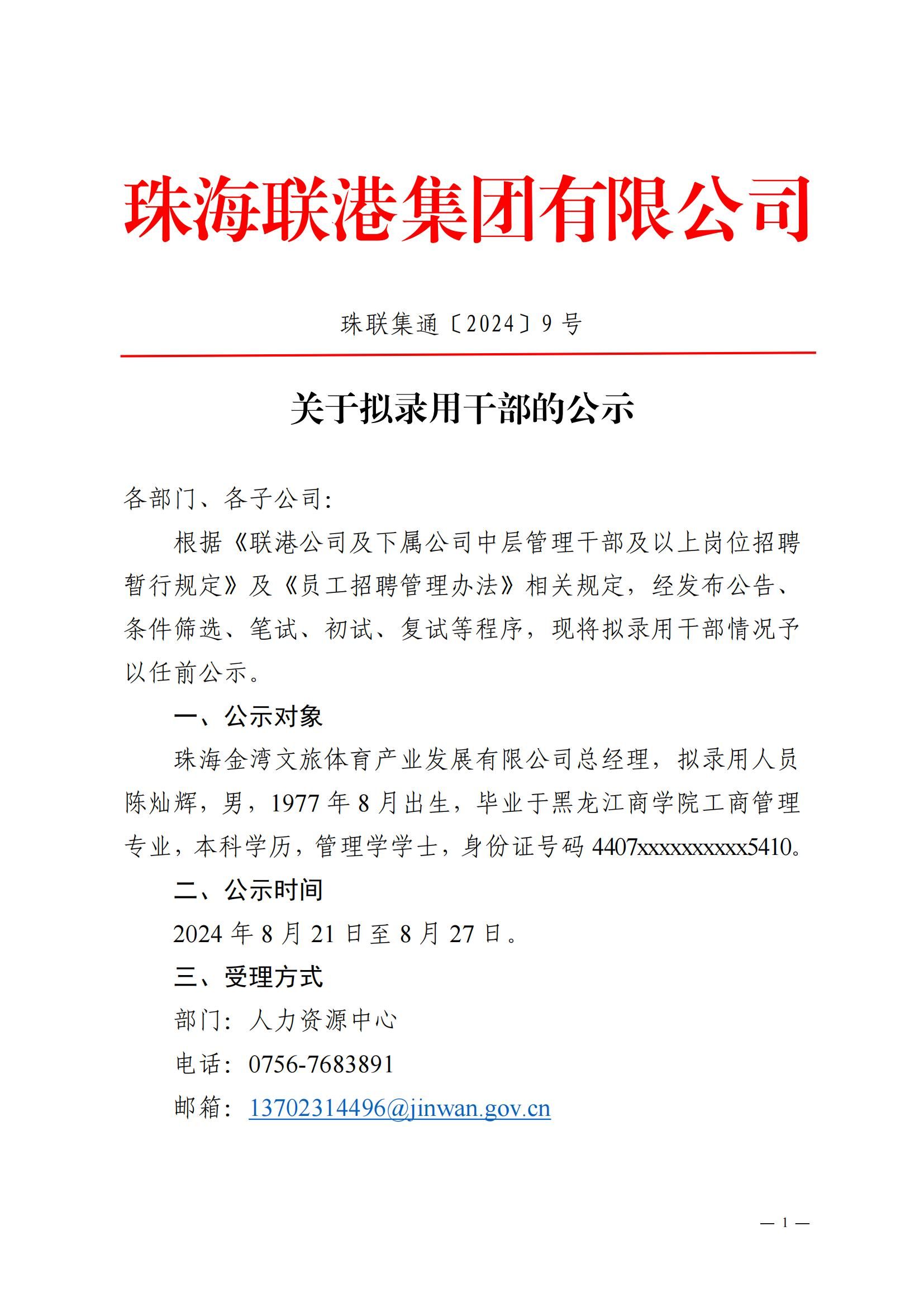 珠聯(lián)集通〔2024〕9號(hào) 關(guān)于擬錄用干部的公示