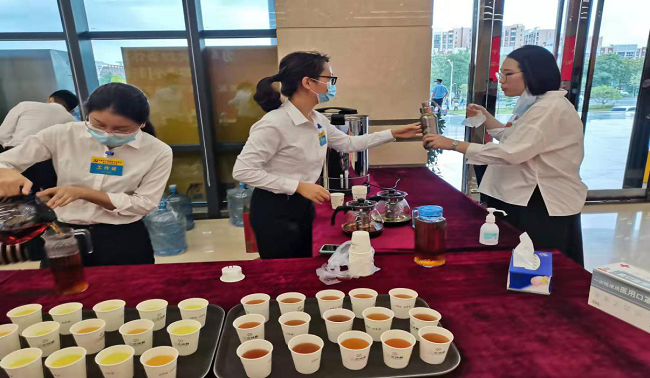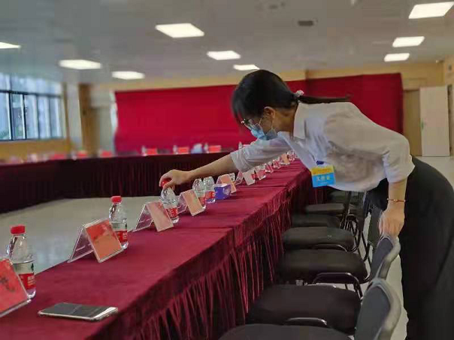 據(jù)統(tǒng)計(jì),本次黨代會(huì)我司共派出83名工作人員參與會(huì)務(wù)保障工作,承接大小會(huì)議10場(chǎng)次,接待會(huì)務(wù)人員1350多人次,達(dá)歷史之最;會(huì)前配合區(qū)職能部門完成參會(huì)人員緊急核酸采樣工作,開展應(yīng)急演練2次;會(huì)議期間更換幕簾調(diào)整擺臺(tái)10余次,有力保障會(huì)議順利召開。