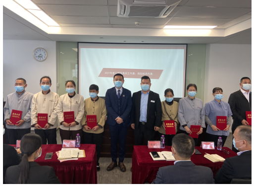 會上,龍總與資產(chǎn)公司班子成員對獲得2021年度優(yōu)秀員工、崗位標兵和疫情防控先進個人稱號的代表頒發(fā)了證書,并在會后同他們親切合影留念。