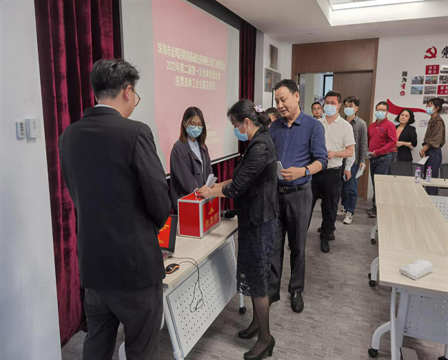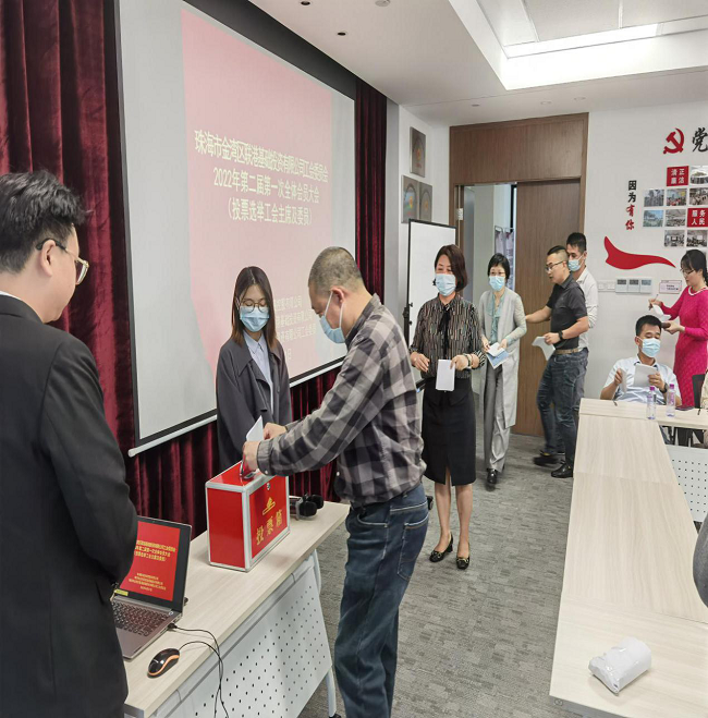 會議伊始,主持人宣讀了區(qū)總工會《關于聯(lián)港基礎投資有限公司工會第二屆委員會補選委員、工會主席及候選人推薦人選請示的批復》,與會會員按程序通過舉手表決方式,全票通過了《聯(lián)港基礎投資有限公司工會第二屆委員會委員及主席補選辦法》,第二屆委員會委員及主席候選人建議名單,選舉總監(jiān)票人、監(jiān)票人、唱票人、計票人名單,并鄭重投出了自己的選票。